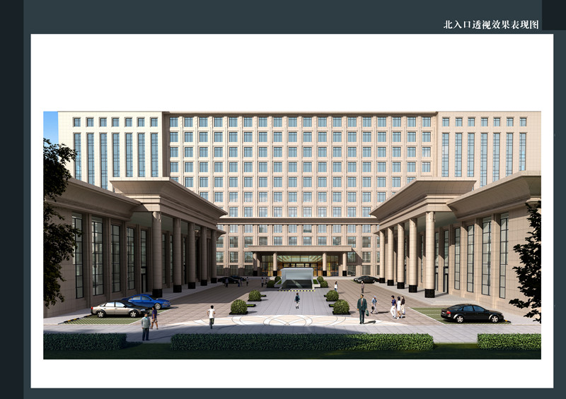 項目基地位于臨沭縣,四至均為政規劃道路,交通及自然條件良好。本方案由辦公大樓、會議廳及公共配套服務三個主要體量構成。建筑師以地理位置劃分基地,既區分場所性質的內外之別,南北高低不同。以一高低的三個模塊,組織空間。基地南側與城市主干道聯系緊密,故把辦公大樓這一公共性強的功能排布在此,形成U的多層建筑體量,舒展大氣。同樣,將功能性相對私密的辦公功能布局在基地的南邊。高層辦公樓,標準層平面呈U型,最大程度地爭取陽光及南向自然景觀。餐廳、咖啡茶座等公共配套服務用房則設置在前兩者的之間,以景觀草坡的形態展現,既有效的組織了人流,又改善了公共空間品質。