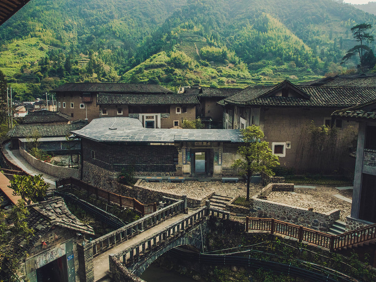 酒店內溫馨舒適的開放空間與每棟土樓的內部庭院相連接。這些庭院包含了餐廳、展覽空間、手工藝作坊、烹飪工作室、瑜伽工作室和兒童游樂場等一系列公共空間。客人們可以在房間內用漳州特有的瓷器品嘗當地的柑橘茶,或者在周圍的山間游玩探索,挖掘新鮮美味的竹筍。青普土樓文化行館的設計旨在打造一個既尊重傳統又啟發靈感的住宿環境。酒店提供種類豐富的餐飲,以及當地特制的啤酒。餐廳采用新鮮的時令蔬菜和有機食材,由本土廚師帶來地道的客家美食。文化行館的持有者王功權長期致力于在酒店、金融等產業中推動中國傳統文化的發展,并將酒店服務業的水平推向一個新的高度。
